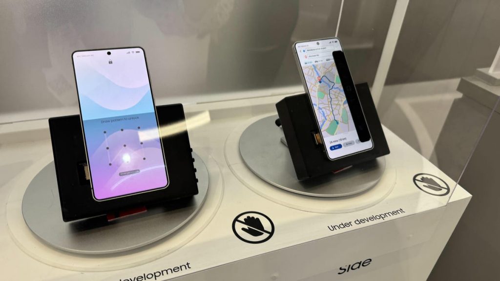 Behind clear plexiglass were two phones with the note «under development» written below them. The first phone showed the Privacy Display working on the entire bottom half of the screen, while the second showed it working on a panel that ran down one side of the screen.