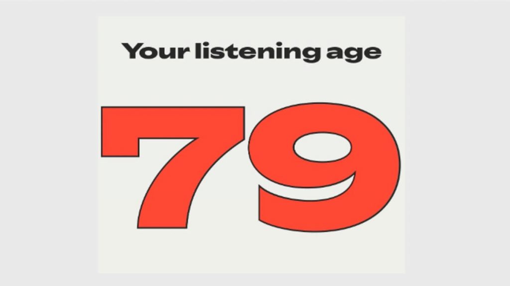 That last one blew my mind a little. My actual age is 57. According to Spotify, my listening age is 79.