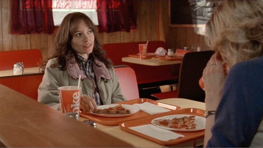 The movie was shot on 16mm film, creating its specialized throwback look. It lifts cinematography straight from ’80s filmmakers along with a slew of other techniques to evoke classics of the era. Everything, down to the credits, is period accurate, and I appreciated all the attention given to making sure everything matches, down to the cups at the pizza restaurant seen early in the movie.